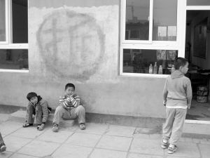 走进红星学校,正是下课时间,孩子们在教室外玩耍嬉戏,玩沙包、跳皮筋。墙上用白漆写的一个“拆”字显得很刺眼,但孩子们似乎已经熟视无睹了。