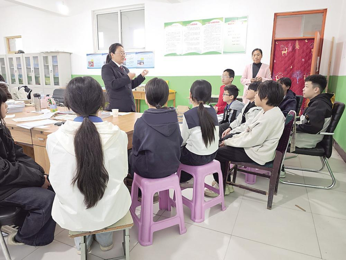 为增强青少年法治意识,日前,曲周县人民检察院干警走进辖区多所中小学校,开展法治教育进校园活动。检察干警与同学们面对面交流,用他们听得懂的语言将法律条文变成具象的行为指南,使他们明白遵纪守法、心存敬畏不仅是对自身行为的负责,也是对他人权利的尊重,从而在心中种下“知法于心、守法于行”的种子。 王燕 摄