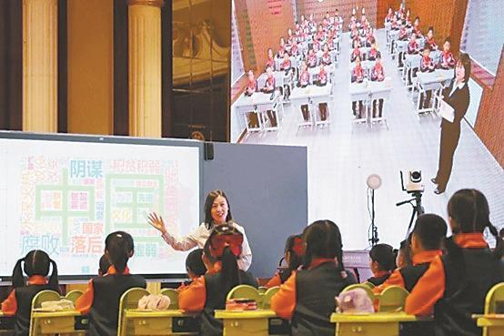 教师正在使用数智化平台授课。