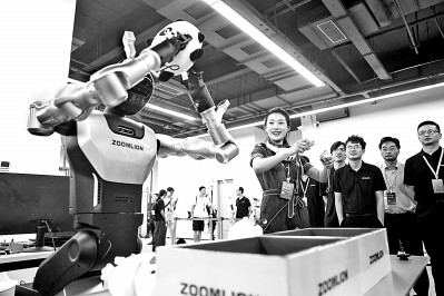 在近期举办的2025中国算力大会上,通过人工智能(AI)视觉进行质检的“打工”机器人、与现场观众“热情”互动的“卖萌”机器狗,以及人工智能工厂沙盘模型等一大批展品集中亮相,吸引了众多观众围观。