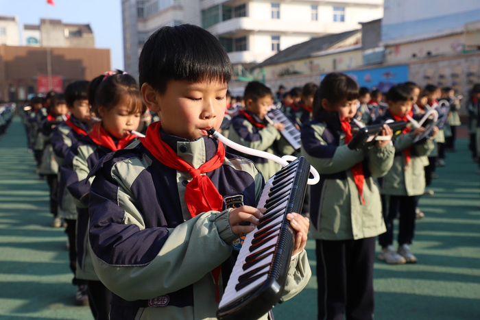 1月16日,冬日的暖阳洒满浙江省温岭市松门镇中心小学的操场。千名学子手托口风琴,随着悠扬的前奏渐起,琴声如清泉奔涌,似浪花翻涌,在校园中交织成一片流动的旋律之海。这场震撼的千人合奏,不仅是该校“乐器进课堂”项目的一次成果盛宴,更是新时代乡村学校美育改革奏响的动人乐章。