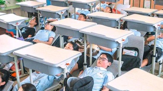 随后,推进孩子午休躺睡在各地提上议事日程。其中,将传统桌椅改为“可躺式”课桌椅,是让学生从过去趴睡午休到“躺下来”午休,提高学生午休质量的重要行动。