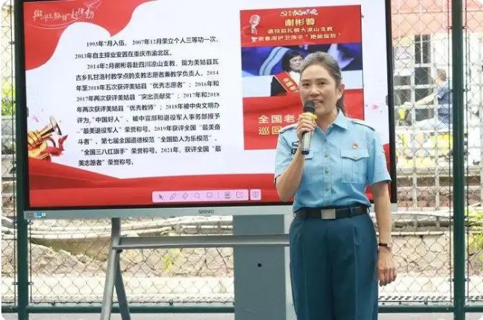 家校协同育新人为进一步深化红色教育,五年级级部特邀“最美退役军人”谢彬蓉女士进校交流。谢彬蓉曾为空军某试验训练基地高级工程师,坚守内蒙古额济纳旗二十年,获个人三等功,还曾扎根四川凉山支教,荣获“中国好人”“全国助人为乐模范”等称号。