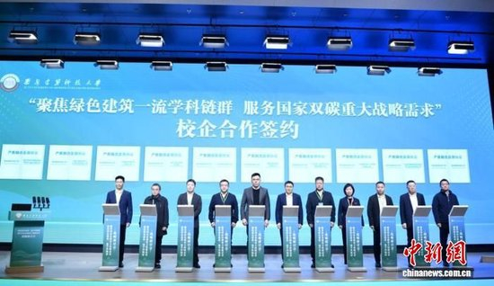 图为“聚焦绿色建筑一流学科链群 服务国家双碳重大战略需求”战略研讨会校企合作签约现场。(西安建筑科技大学供图)
