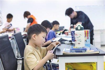 7月14日,孩子们在吴兴区月河街道东湖家园社区爱心暑托班学手工。暑假期间,该区引导学校、社区等多方力量开展暑期幼儿托管服务,让孩子们度过一个安全快乐的假期,为双职工家庭解决“看护难”问题。
