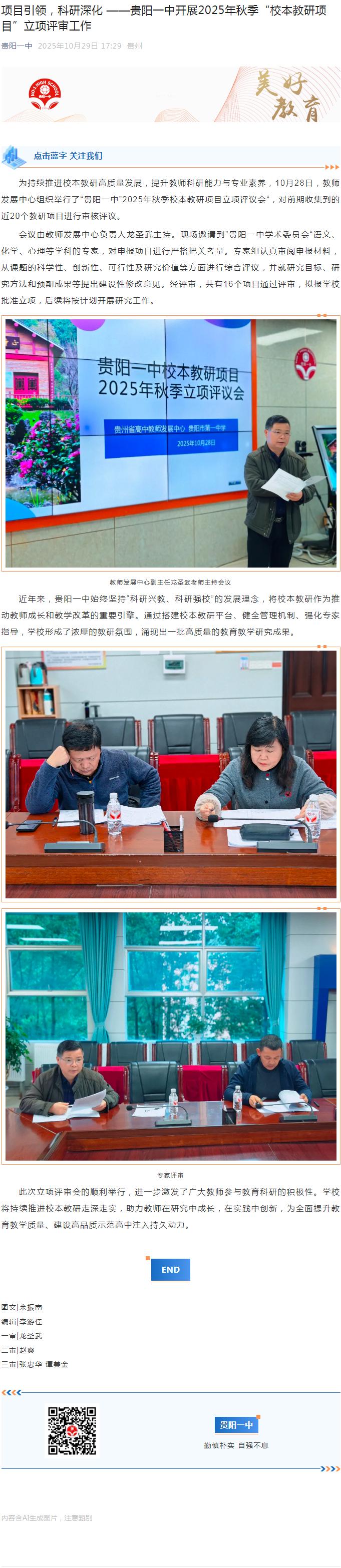 项目引领,科研深化 ——贵阳一中开展2025年秋季“校本教研项目”立项评审工作