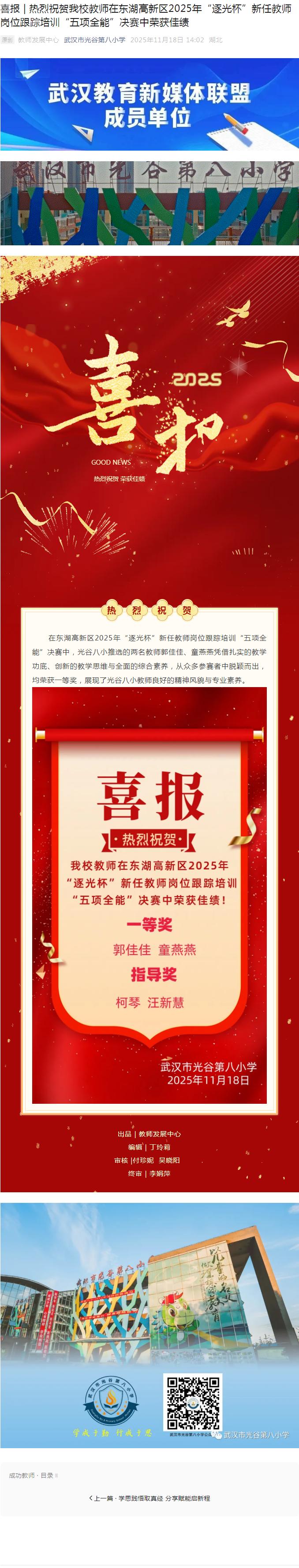 喜报 | 热烈祝贺光谷八小教师在东湖高新区2025年“逐光杯”新任教师岗位跟踪培训“五项全能”决赛中荣获佳绩