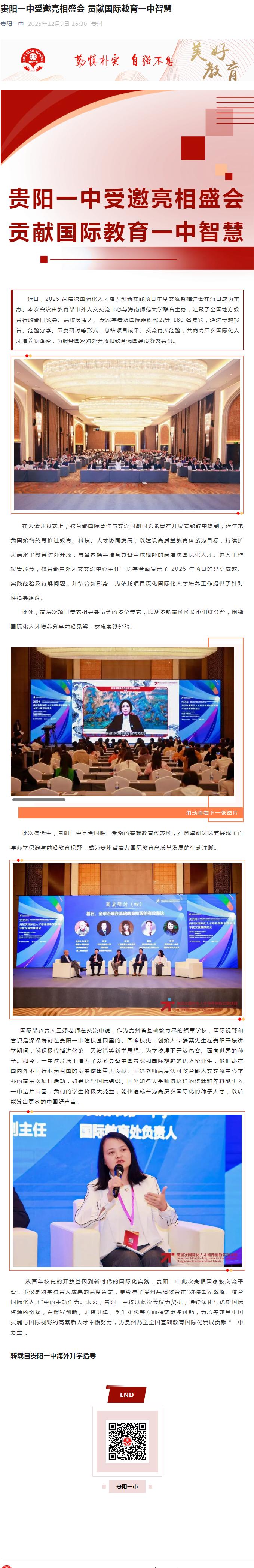 贵阳一中受邀亮相盛会 贡献国际教育一中智慧