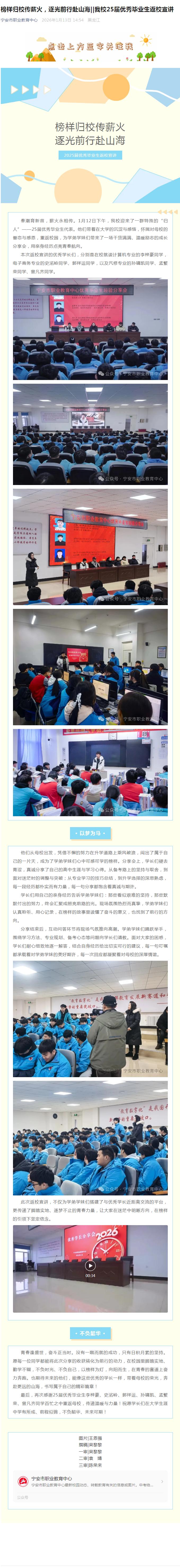 榜样归校传薪火,逐光前行赴山海||宁安市职业教育中心25届优秀毕业生返校宣讲