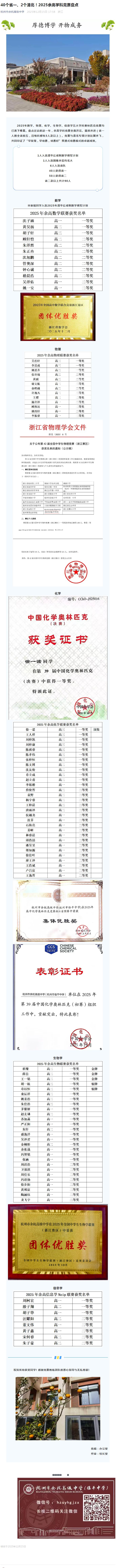 40个省一、2个清北!2025余高学科竞赛盘点