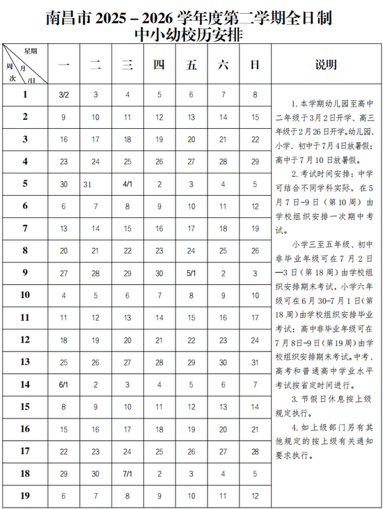 江西全省高三年级统一于2月26日开学,幼儿园、小学、初中及高一、高二年级统一于3月2日正式上课。春季学期总时长19周,减去假期和周末后,实际教学天数同样低于90天。